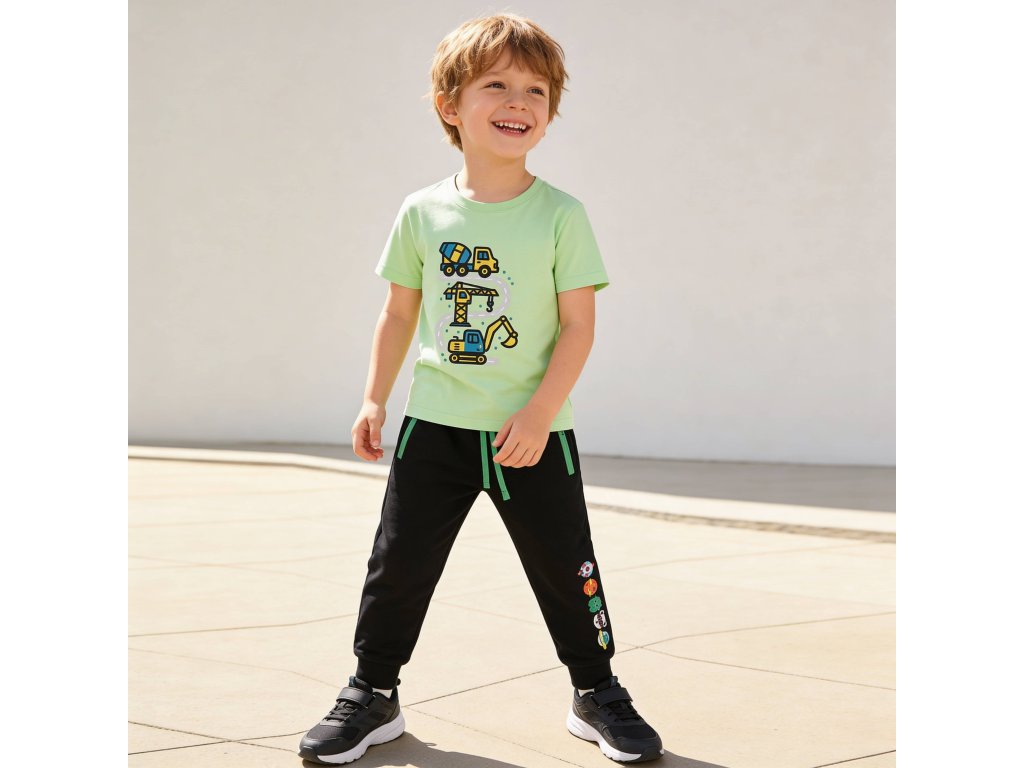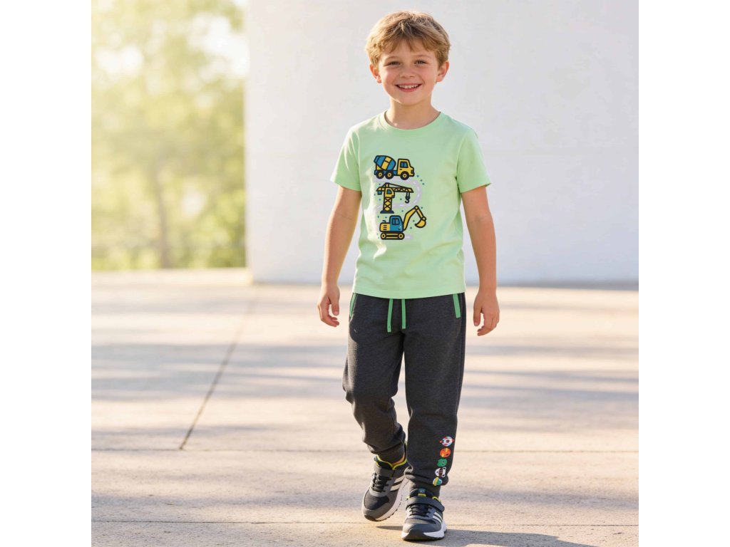 Objevte pohodlí a styl s naším chlapeckým bavlněným tričkem. Vyrobeno ze 100% bavlny, toto tričko nabízí měkkost a prodyšnost, kterou vaši malí dobrodruzi potřebují. Krátký rukáv a kulatý výstřih zajišťují pohodlné nošení, zatímco potisk na přední straně dodává hravý vzhled. V klasickém střihu a v osvěžující zelinkavé barvě je ideální pro každou příležitost. Přidejte do šatníku kousek, který kombinuje kvalitu a styl. Pozor! Barva trička na obrázku je o něco světlejší než ve skutečnosti, barva trika ve skutečnosti je jasnější zelená.