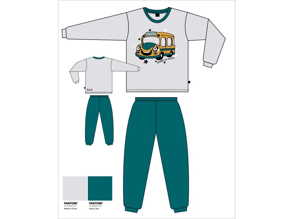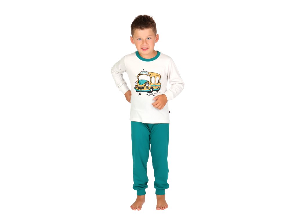 Chlapecké pyžamo CALVI 24-511 - dlouhé/smetanovozelené/autobus