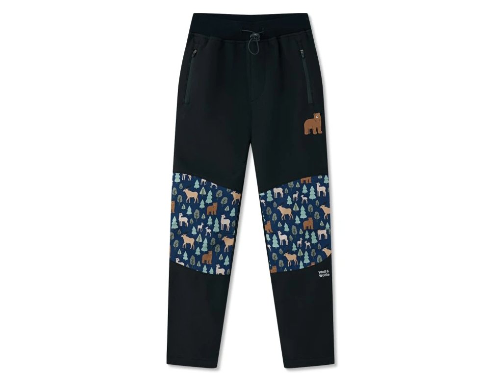 Chlapecké softshellové kalhoty Wolf & Wolfie B2595 - zateplené flísem/černá/lesní zvířátka