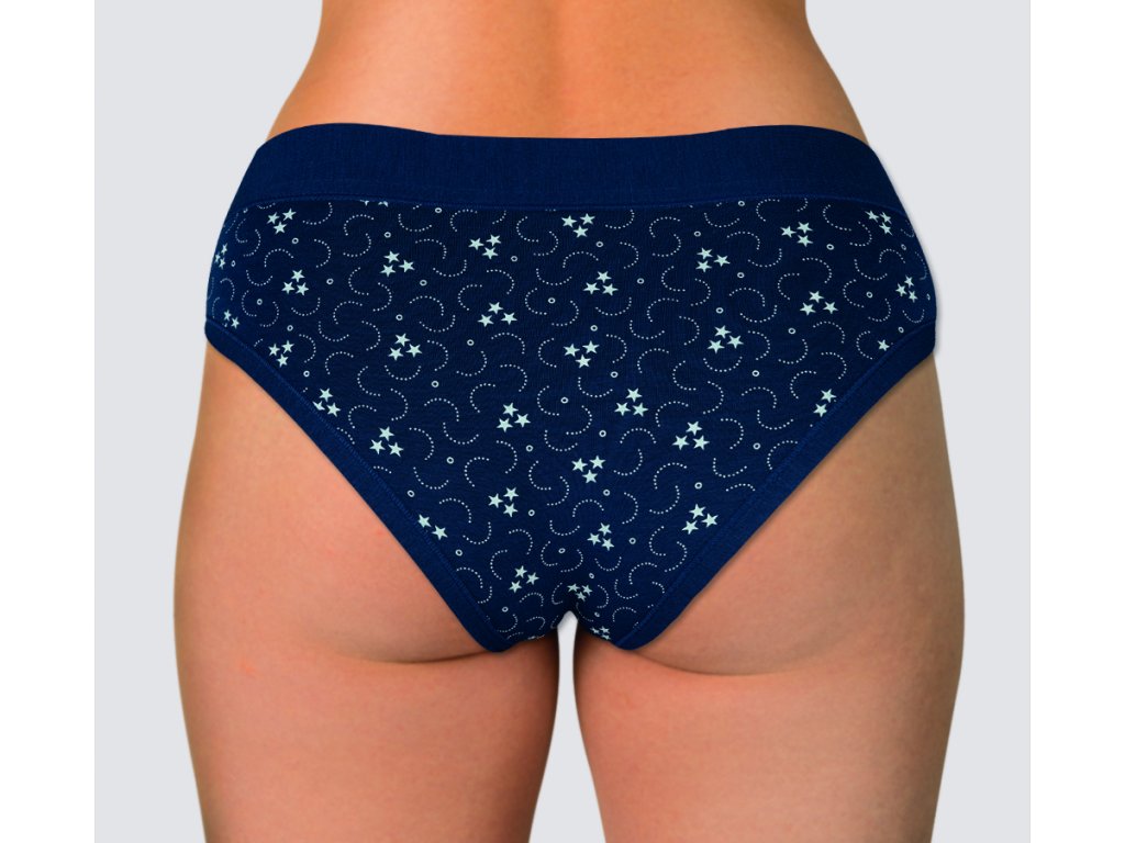 Dámské kalhotky sníženého střihu. Kalhotky jsou vyrobeny z velmi kvalitní elastické směsi přírodního vlákna Modal a bavlny s příměsí elastanu pro větší pružnost materiálu. Materiál se skvěle přizpůsobí postavě a drží stálý tvar prádla. Díky širokému lemu v pase ideálně přiléhají k tělu a jsou velmi pohodlné. Komfortní lem okolo nohou zaručuje, že se kalhotky nezařezávají do stehen. Bavlněný klínek.