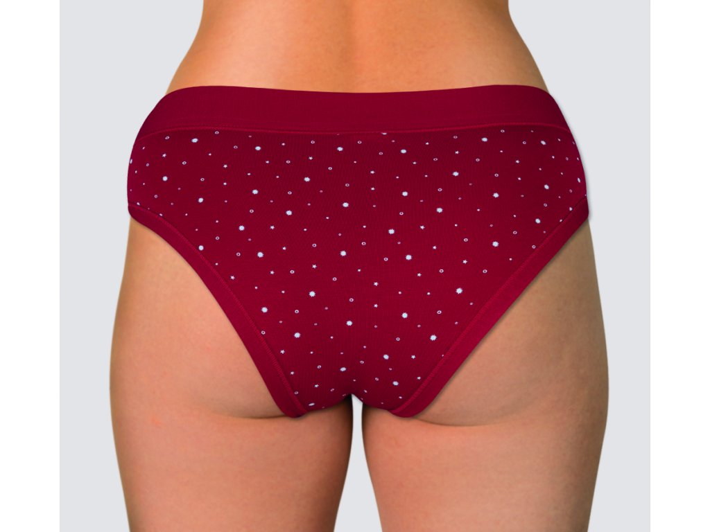 Dámské kalhotky sníženého střihu. Kalhotky jsou vyrobeny z velmi kvalitní elastické směsi přírodního vlákna Modal a bavlny s příměsí elastanu pro větší pružnost materiálu. Materiál se skvěle přizpůsobí postavě a drží stálý tvar prádla. Díky širokému lemu v pase ideálně přiléhají k tělu a jsou velmi pohodlné. Komfortní lem okolo nohou zaručuje, že se kalhotky nezařezávají do stehen. Bavlněný klínek.