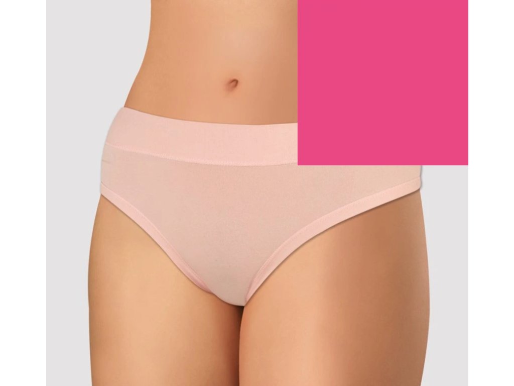 Dámské kalhotky klasického střihu. Kalhotky jsou vyrobeny z velmi kvalitní elastické bavlny s příměsí vlákna Tactel, které dodává materiálu hebkost a prodyšnost. Materiál se skvěle přizpůsobí postavě a drží stálý tvar prádla. Díky širokému lemu v pase ideálně přiléhají k tělu a jsou velmi pohodlné. Komfortní lem okolo nohou zaručuje, že se kalhotky nezařezávají do stehen. Bavlněný klínek.