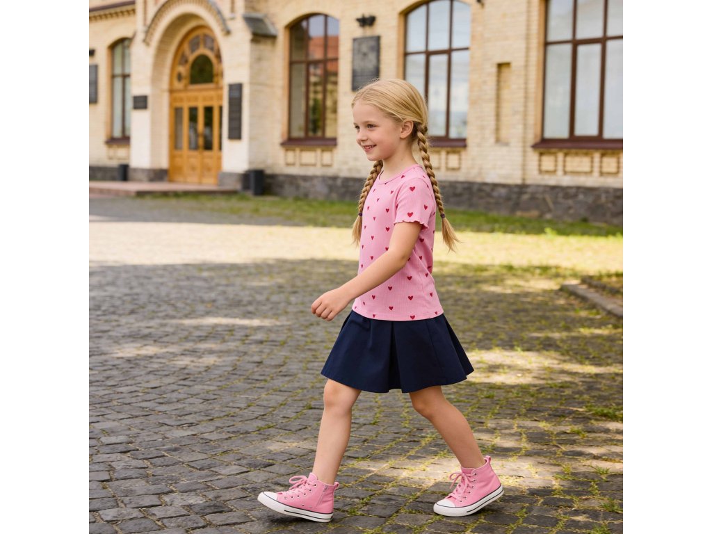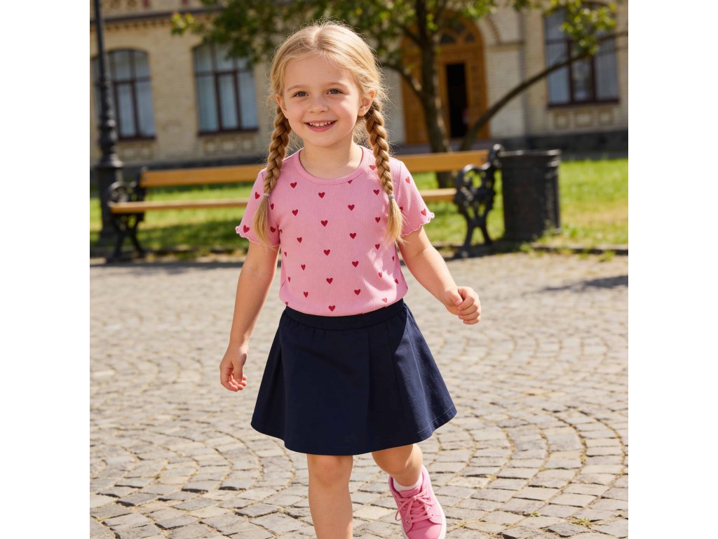 Představujeme dívčí bavlněné tričko Wolf & Wolfie, které kombinuje styl a pohodlí v jednom! 🌟 Toto růžové tričko je vyrobeno z žebrovaného pružného materiálu, který zajišťuje maximální pohodlí při nošení. Jemné potisky drobných srdíček dodávají tričku roztomilý a hravý vzhled, ideální pro každou malou princeznu. 👧💖 Krátké rukávy s ozdobnými okraji a kulatý výstřih u krku přinášejí moderní a svěží design. Toto tričko je perfektní volbou pro každodenní nošení i speciální příležitosti. Doplňte šatník vaší dcerky o kousek, ve kterém bude zářit každý den! 🌈