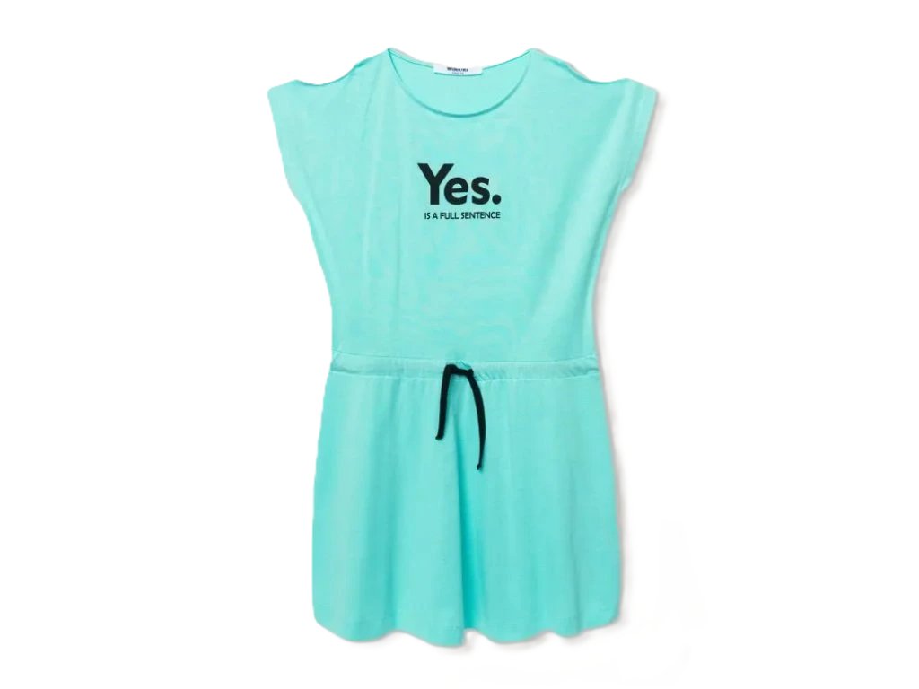 Bavlněné dívčí šaty YES, příjemné pohodlné šaty do léta v krásné tyrkysové barvě a jednoduchém designu, s kterým se trefíte do černého...
