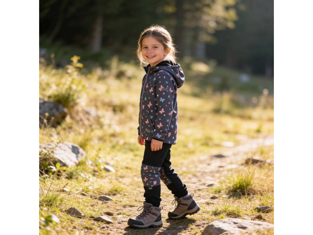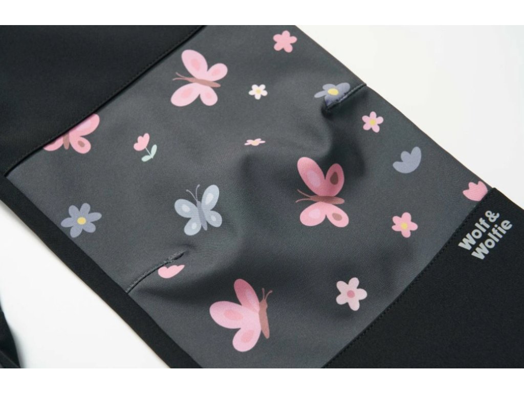 Dívčí softshellové kalhoty bez fleecu - Wolf & Wolfie B2683 - černá / motýlci