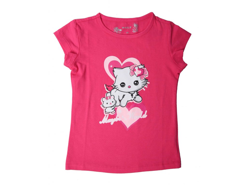 Příjemné bavlněné dívčí triko v klasickém střihu, s 5% podílem elastanu a milým potiskem na přední straně. Krásné dívčí triko vhodné jak k sukýnce, tak i k legínám nebo riflím.