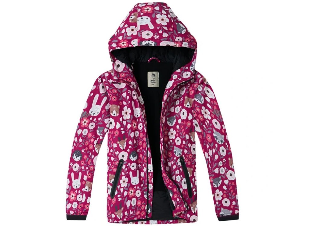 Dívčí zimní bunda Wolf & Wolfie B2567 - fialovorůžová/lesní zvířátka