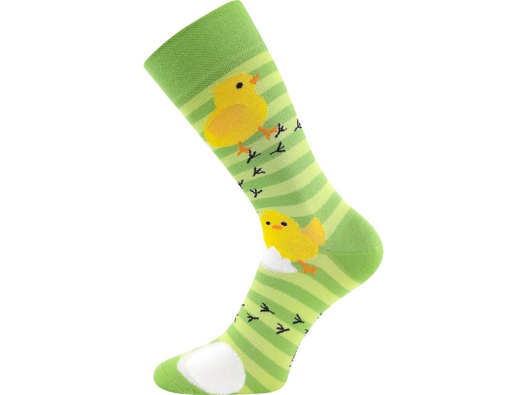 Ponožky obrázkové DEASTER s velikonočním motivem KUŘÁTEK 2/zelená pruh