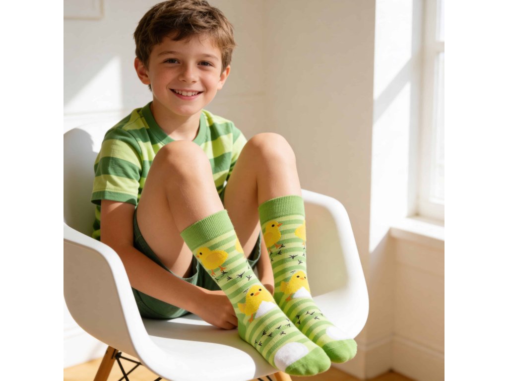 Ponožky obrázkové DEASTER s velikonočním motivem KUŘÁTEK 2/zelená pruh