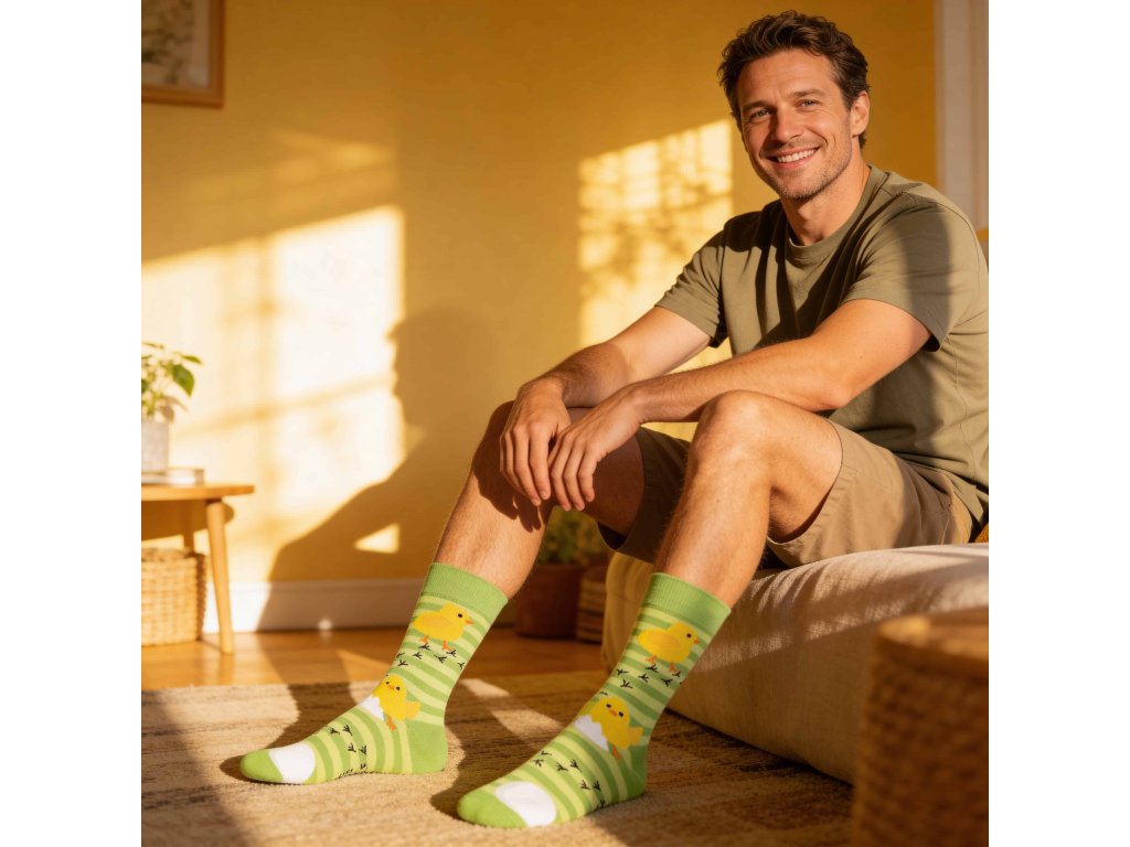 Originální veselé velikonoční ponožky jsou stylové a hravé ponožky, kterými můžete skvěle vyjádřit svoji náladu nebo smysl pro detail. Klasické ponožky a jejich jedinečný design zaručeně rozesměje každého škarohlída! Oblečte si pohodlné ponožky Lonka, s řetízkovanou špici, která netlačí a netvoří otlaky ani puchýře. Nestahující pique lem nikde neškrtí, vhodný i pro každodenní nošení.