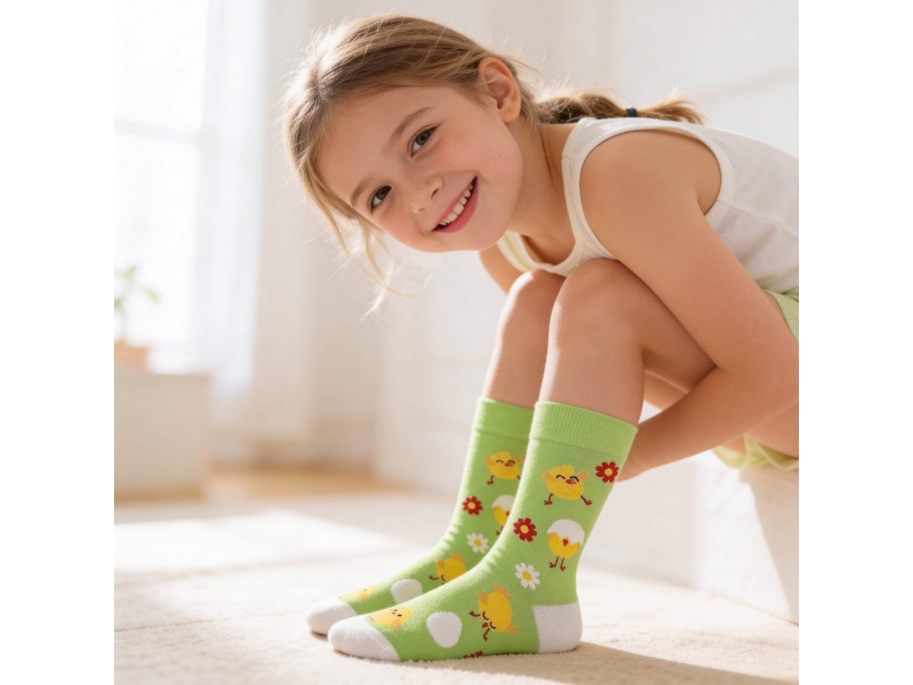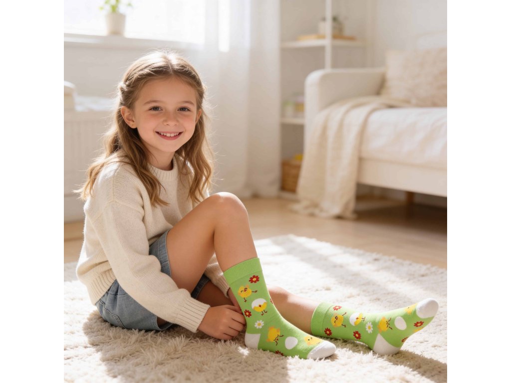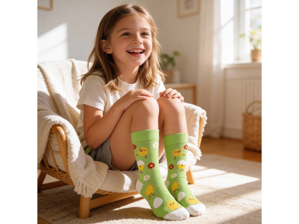 Ponožky obrázkové DEASTER s velikonočním motivem KUŘÁTEK/zelená