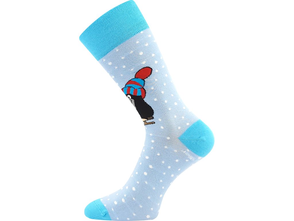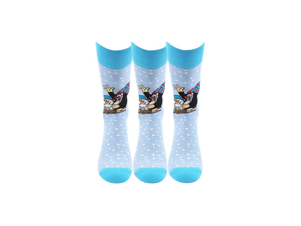 BOMA ponožky společenské KR 211 s vánočním obrázkem Krtka SVĚTLE MODRÉ