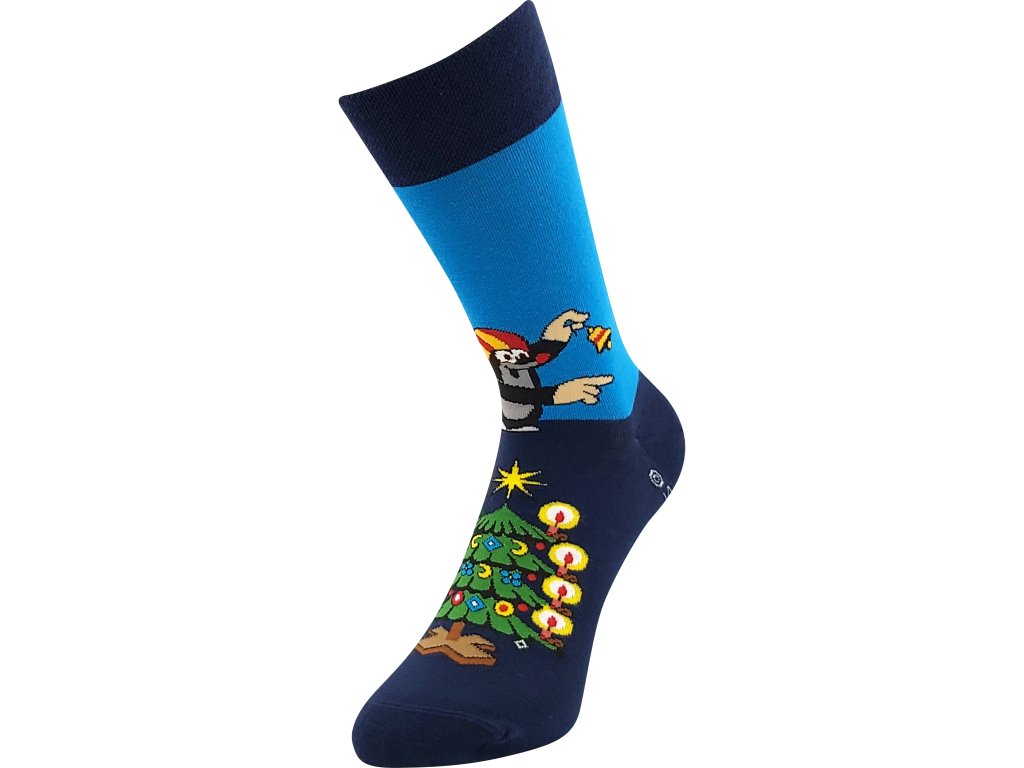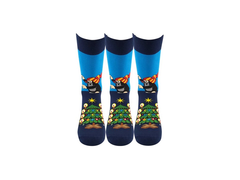 BOMA ponožky společenské KR 211 s vánočním obrázkem Krtka TMAVĚ MODRÉ