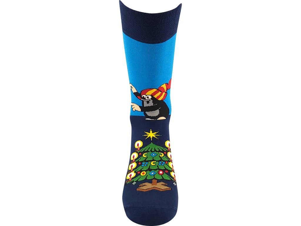 Ponožky společenské KR 211 s vánočním obrázkem Krtka - tmavě modré