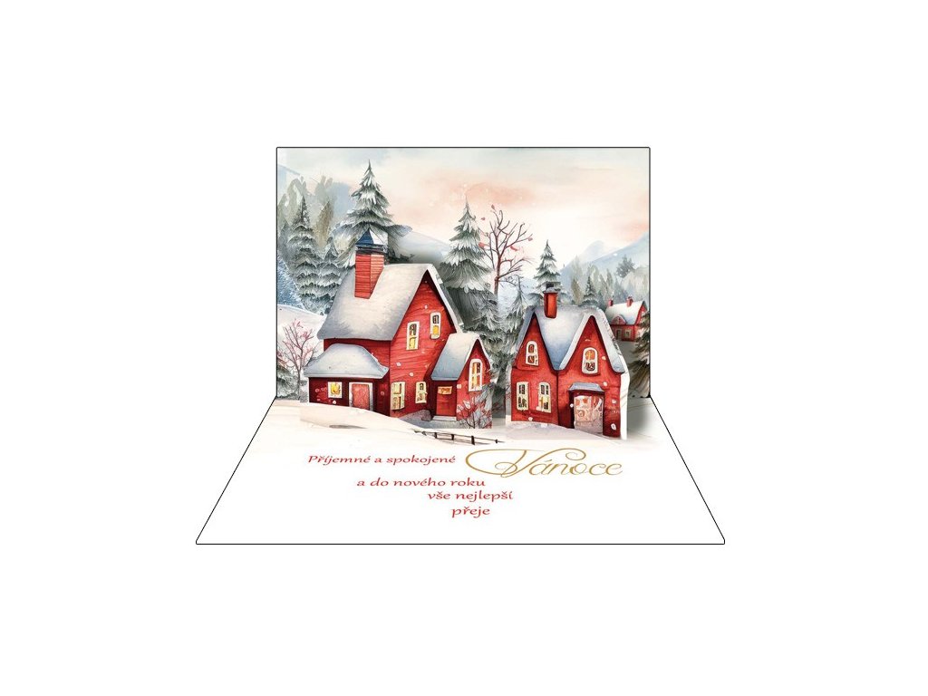 Vánoční papírové blahopřání 3D určitě vykouzlí úsměv na rtech a zahřeje u srdce. Po otevření přání se uvnitř vytvoří 3D obrázek
